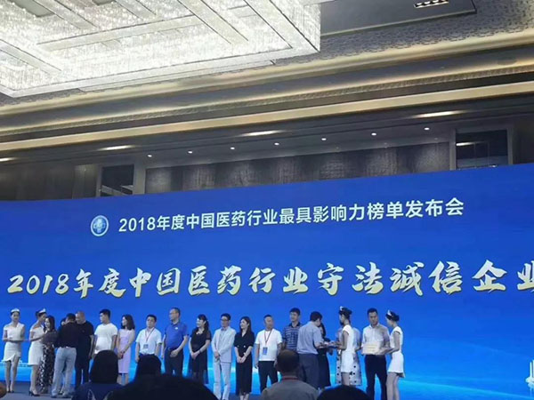 云南騰藥榮膺“2018年度中國(guó)醫(yī)藥行業(yè)守法誠(chéng)信企業(yè)”。